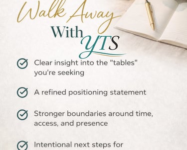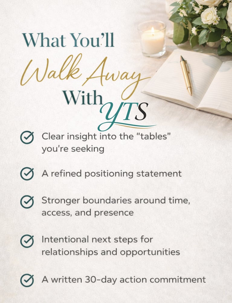 Your Table Society is a facilitated, in-person workshop designed for professionals who want clarity in how they show up, where they belong, and what comes next.